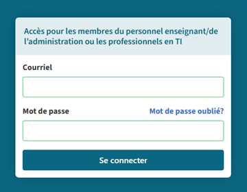 - Cliquez sur Se connecter sous Personnel enseignant/direction d’école et les professionnels en TI.