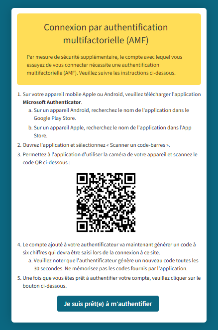 Si l’AMF est requise pour vous, vous serez automatiquement invité à la configurer.
